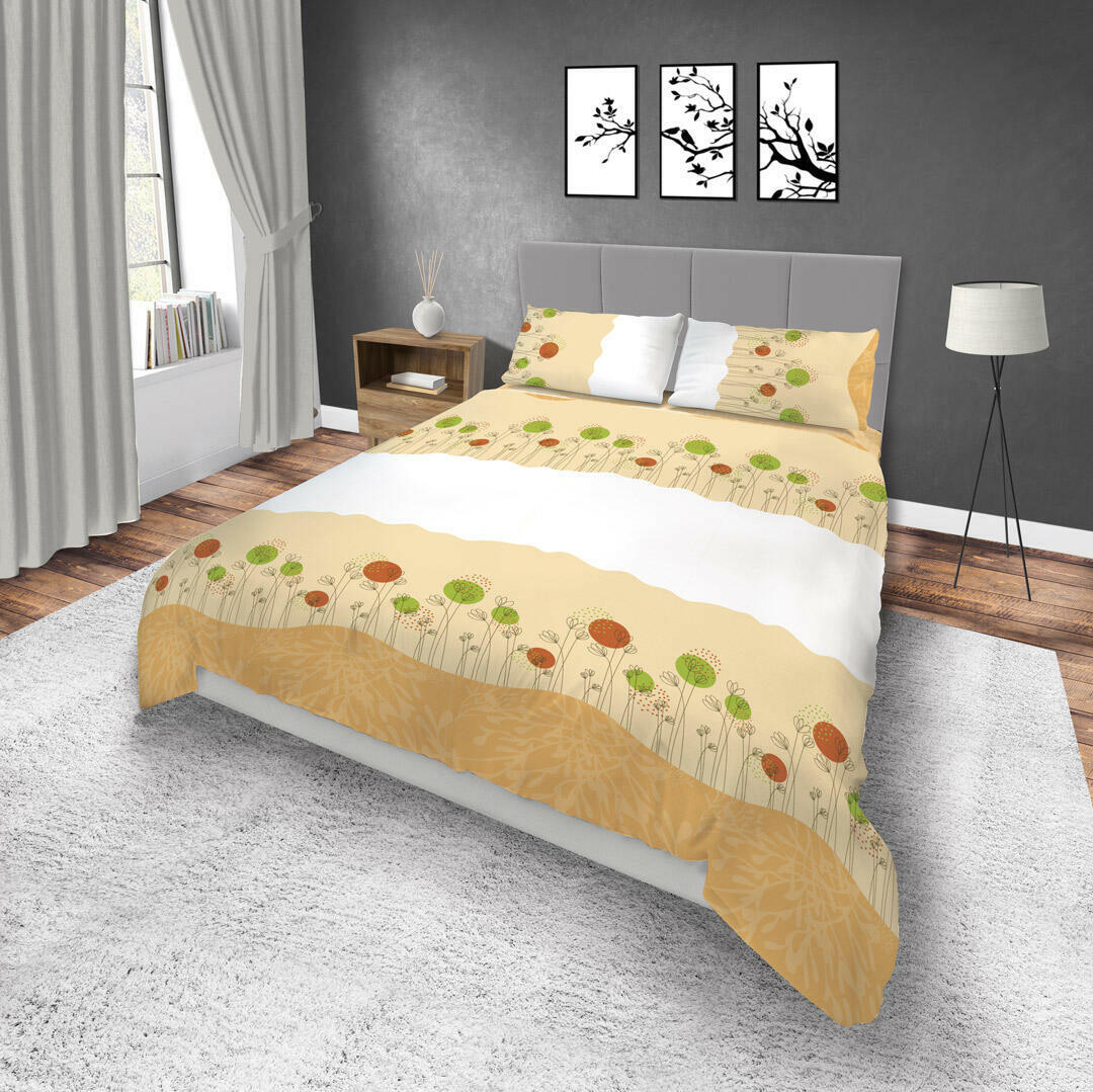 JUEGOS DE SÁBANAS MICROFIBRA CÍRCULOS VERDES Y ROSAS FONDO CREMA